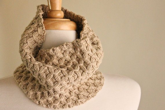 The So-Much-Honey Cowl. A simple, spring-friendly cowl that has just-right luxurious touches. This “So Much Honey” cowl is a comfy hand knit, perfect for any season, especially for chilly spring days or summer evenings. This light and soft cowl is created from the finest fibers of a soya cotton blend yarn in a lovely honey hue. It features an all-over honeycomb-like smocked motif that is subtle enough to compliment any outfit. This close-to-the-neck cowl has a gentle stretch for ease of pulling on over the head.
