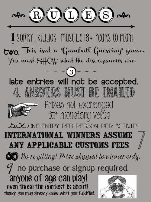 Well, “Carol,” thank you for your interest in our blog. However, you wouldn't be considered for the prize–as you didn't enter, and the contest hasn't technically started yet. If you would like to enter, you may. As stated above, all answers must be submitted via email, not in the comments. Names can be kept private if you don't want anyone to know you've entered.