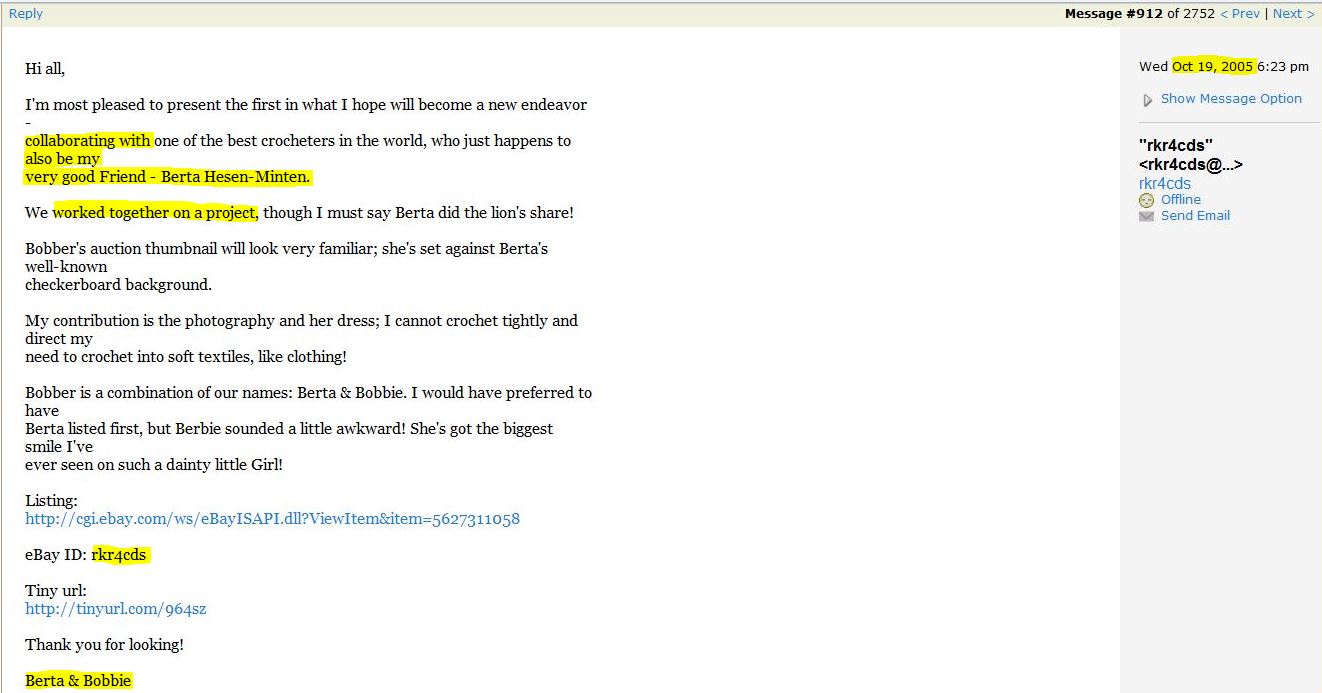 Post 3: One of Bobbie’s posts on a public yahoo group