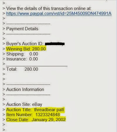 Post 5: The receipt for my eBay pattern sale