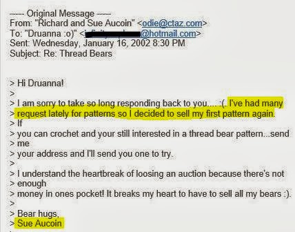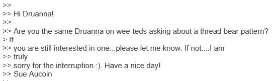 Thread Bears Co. owners: so what is the point of this post? I don't see a question here. There are a few complimentary posts between you and collectors (we early bear makers also know Druanna Pegg)