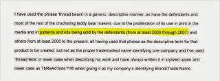 We are giving the owners of these words and images full credit. All statements that were obtained via USPTO were for the Thread Teds by Thread Bears® proceedings. Links to verify any of the publicly posted information is available upon emailed request.