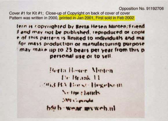 Post 1: This was obtained from Berta’s evidence at the Trademark Office in regards to her first pattern/kit