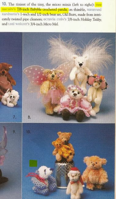 In post 2, Berta says that she started selling “thread bears” in 1999-2000, but her earliest ad (since she didn’t show any other) from 2001 shows that she was selling sewn bears when Sue was selling crocheted bears in the same magazine.
