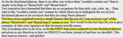In post 1 Bobbie says that you’ve never explained your disclaimers, but in post 2, you explained what the disclaimers meant. Bobbie did know about it, because she commented on the same topic in post 3.