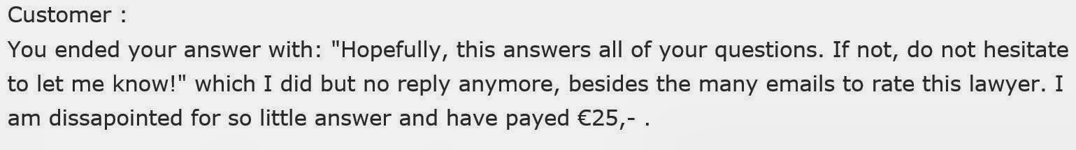 So yes, she may have received a disclaimer for this answer. The disclaimer just stresses to the customer that this lawyer is not legally bound to represent in any proceedings. These lawyers are truly lawyers.