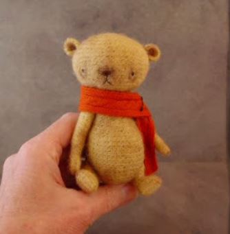 To us, Autumn is all about pumpkins, spicy colors, warm beverages, and cozy knits. My newest design, a PRiMiTeDs bear encompasses everything that we believe this season has to offer. Please meet CHai-T with his creamy, pumpkin pin cushion!